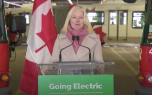 Catherine McKenna, Minister of Infrastructure and Communities, announcing the federal transit funding. Image: CPAC