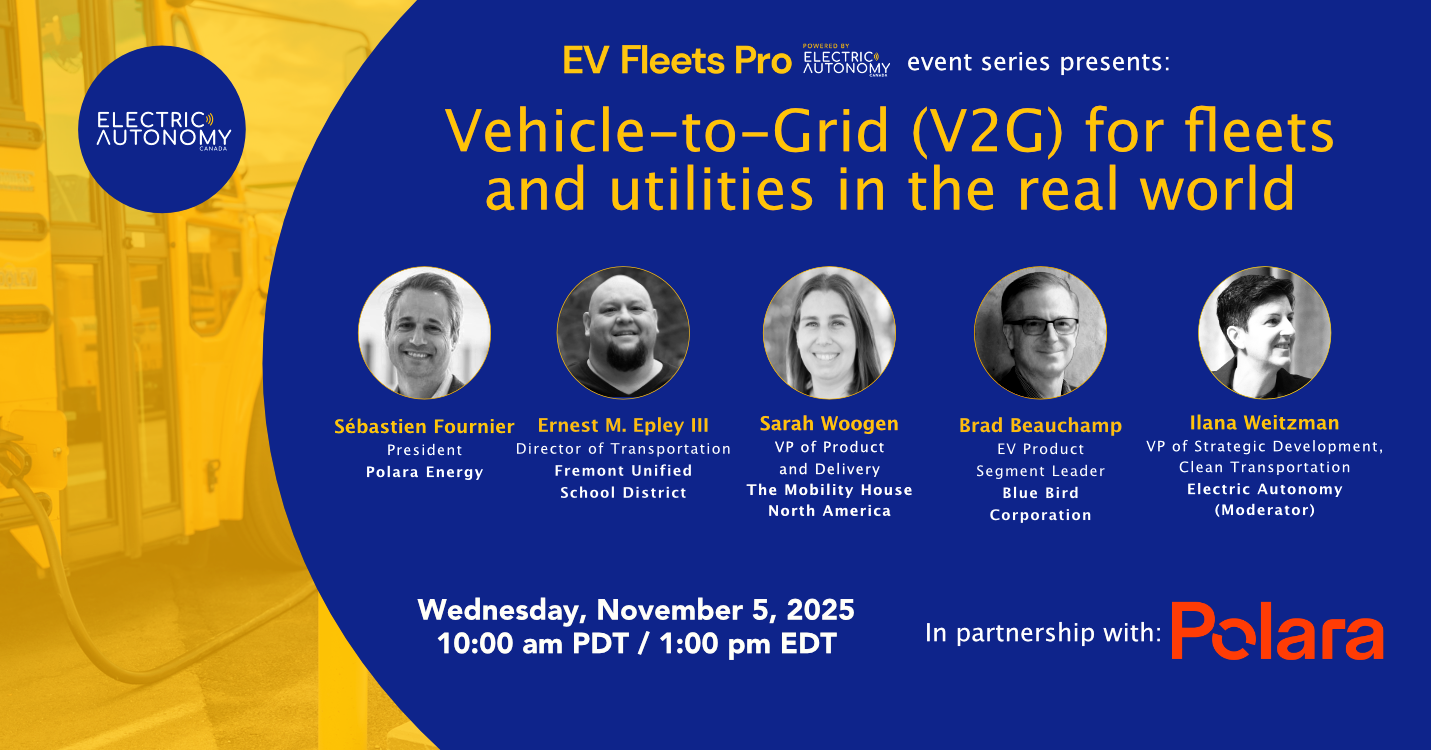 In this virtual discussion, discover how fleet operators across Canada are transforming fuelling their fleets from a cost centre into a financial asset. Hear how utilities are helping fleets to earn substantial incentives through new demand response and battery storage programs, and how carbon credit generation can create a new, ongoing revenue stream with every kilowatt delivered. You’ll also learn how smart software platforms are simplifying these strategies, giving fleet managers automated participation in utility and clean fuel programs.