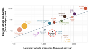 Canada’s 2018 EV production compared to other leading economies. Source: ICCT Power Play Report